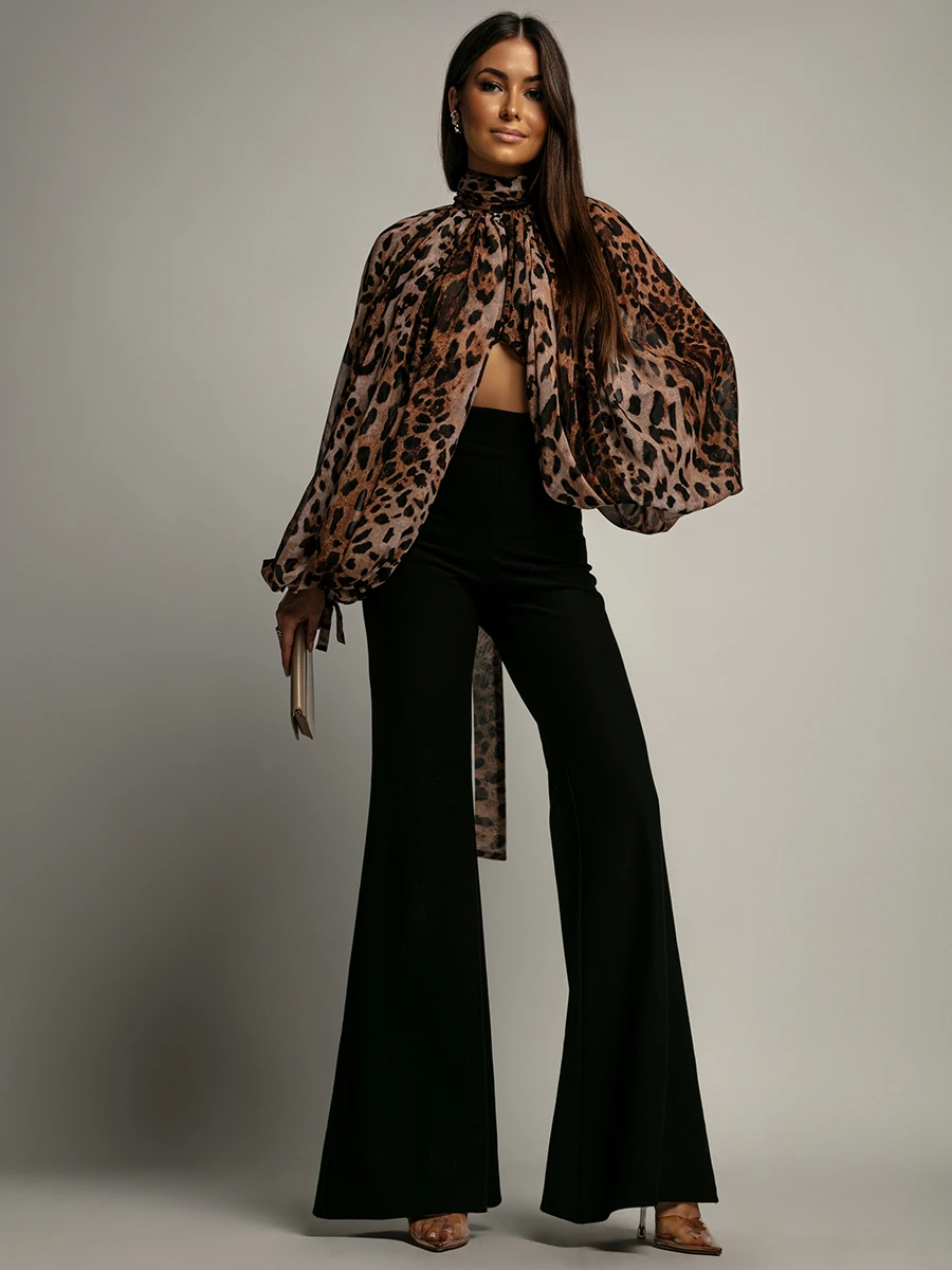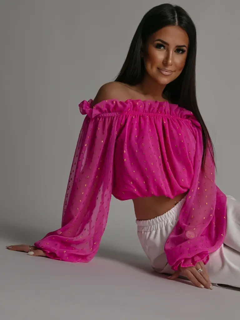 Bluzka elegancka Rember to propozycja pełna klasy i subtelnej lekkości. Uszyta z delikatnego szyfonu, zachwyca wyjątkowym krojem z półgolfem, który z tyłu wykończony jest romantyczną kokardą wiązaną na szyi. Długie, szerokie rękawy nadają jej zwiewnego charakteru, a ozdobne wiązania przy mankietach dodają eleganckiego akcentu. Brak podszewki sprawia, że bluzka pozostaje transparentna i eteryczna, co czyni ją idealnym wyborem na szczególne okazje, gdy chcesz podkreślić swoją kobiecość i delikatność.