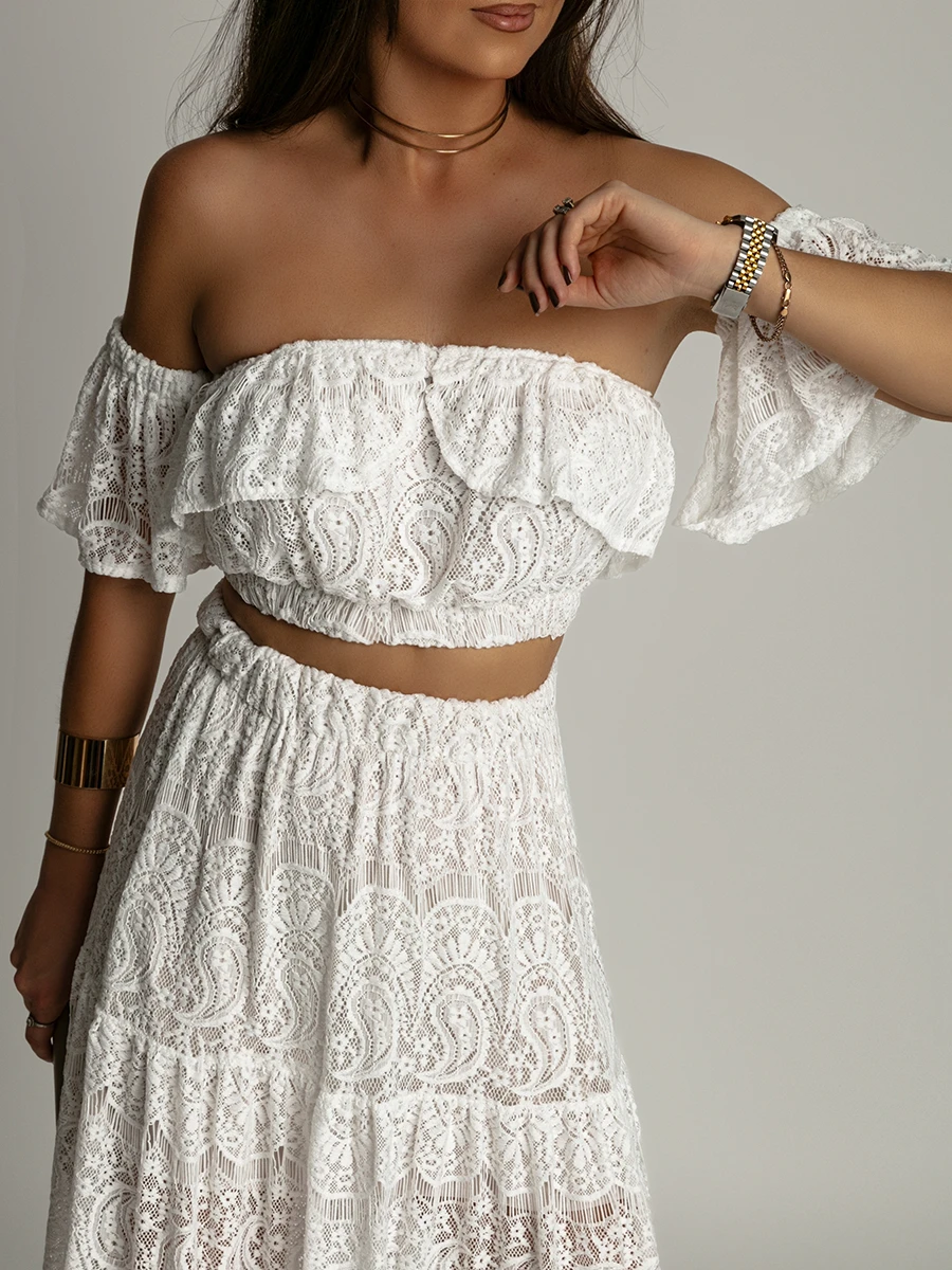 Komplet koronkowy spódnica + bluzka NB Desperado biały