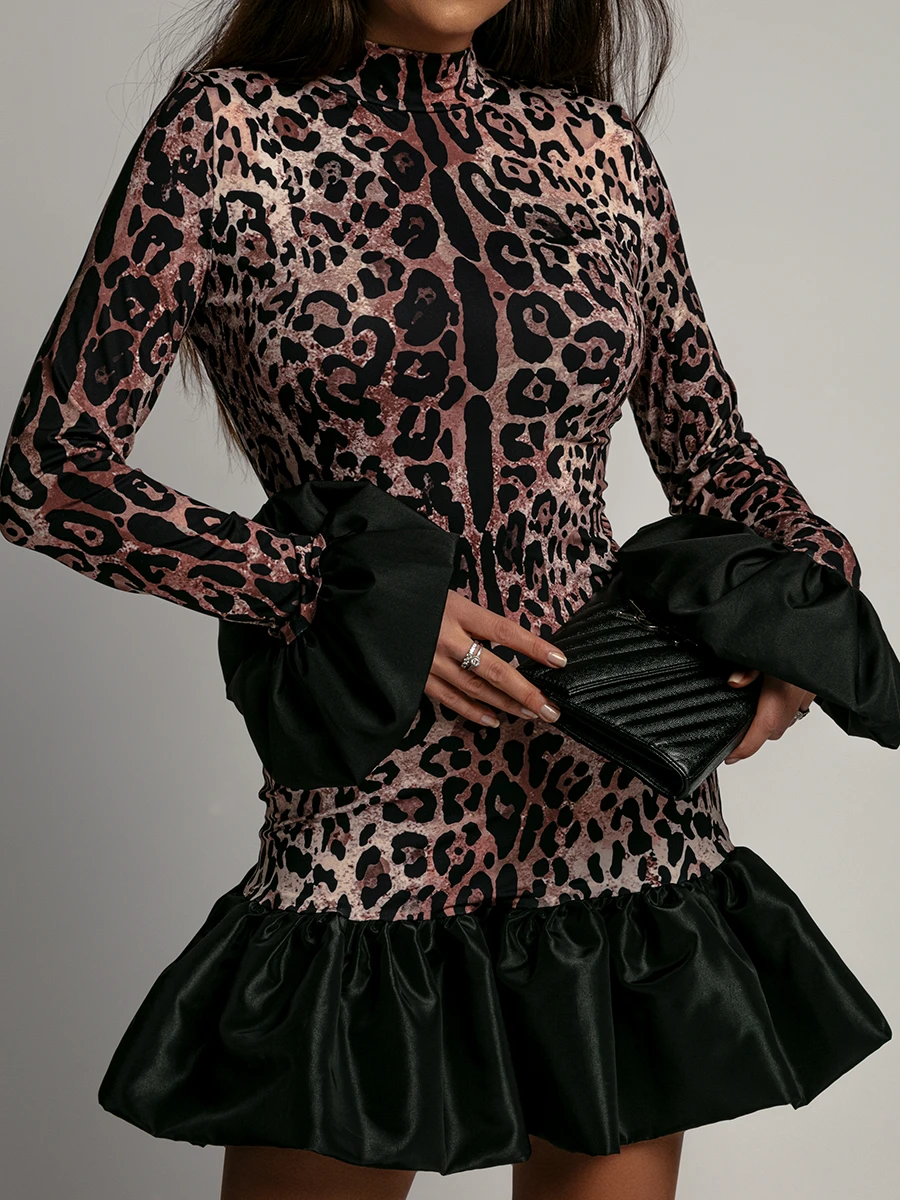 Sukienka elastyczna NB Cops w modną panterkę to idealne połączenie klasyki z odważnym, nowoczesnym akcentem. Mini fason subtelnie podkreśla sylwetkę, a charakterystyczna bombka u dołu nadaje sukience unikalnego, pełniejszego kształtu. Krój uzupełniają bufki na rękawach, które wprowadzają lekko dramatyczny efekt i podkreślają kobiece ramiona. Elegancji dodają dwa guziki przy kołnierzyku, a elastyczny materiał zapewnia komfort noszenia i idealne dopasowanie do ciała. To model stworzony na imprezy, randki czy wieczorne wyjścia, łączący wygodę z wyjątkowym stylem.