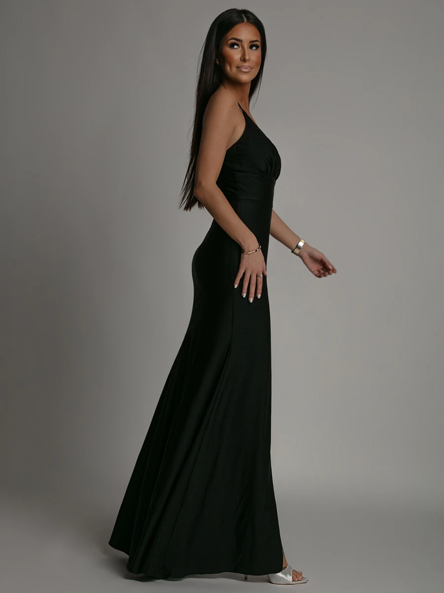 Sukienka maxi Ivas to klasyczna propozycja o satynowym wykończeniu, idealna na wyjątkowe okazje. Model na cienkich ramiączkach z kopertowym dekoltem subtelnie podkreśla biust, a mocno dopasowana talia z wyższym przeszyciem eksponuje sylwetkę. Długie wycięcie sięgające do łydki dodaje sukience wieczorowego charakteru i elegancji, sprawiając, że każda stylizacja staje się wyjątkowa.