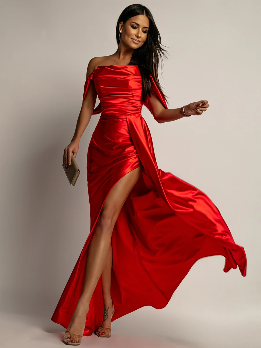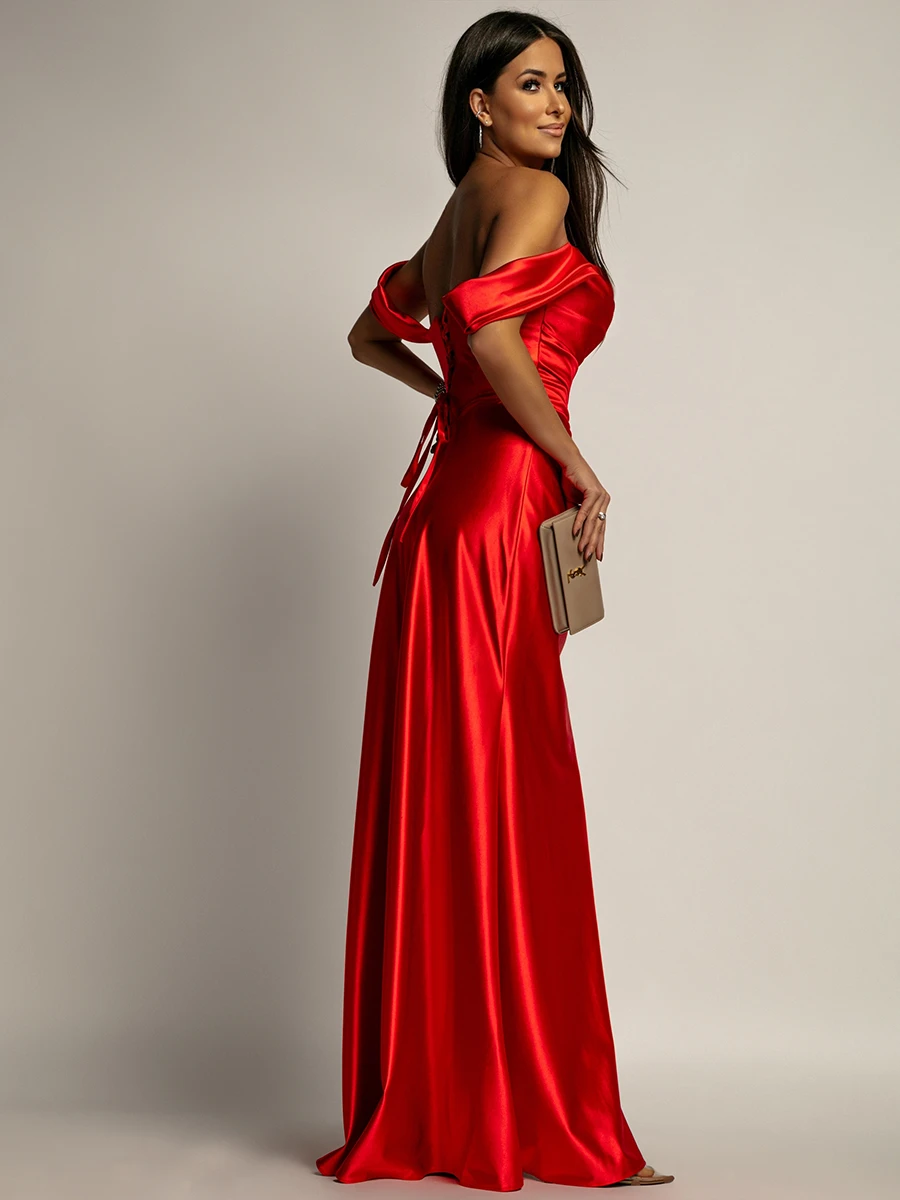 Wieczorowa sukienka NB SATOE to elegancja w najczystszej postaci. Wykonana z delikatnie połyskującej satyny, zachwyca swoim szykiem i kobiecym charakterem. Usztywniany, gorsetowy krój góry doskonale modeluje sylwetkę, podkreślając biust i talię, a opuszczony materiał na ramionach tworzy subtelne rękawki, dodając całości romantycznego uroku. Koktajlowy dół zapewnia lekkość i swobodę ruchów, a wysokie rozcięcie na udzie wprowadza nutę zmysłowości. To kreacja stworzona na wyjątkowe okazje – bale, wesela czy wieczorne przyjęcia – która dzięki swojemu połyskującemu materiałowi sprawi, że będziesz błyszczeć i zachwycać w każdej chwili.