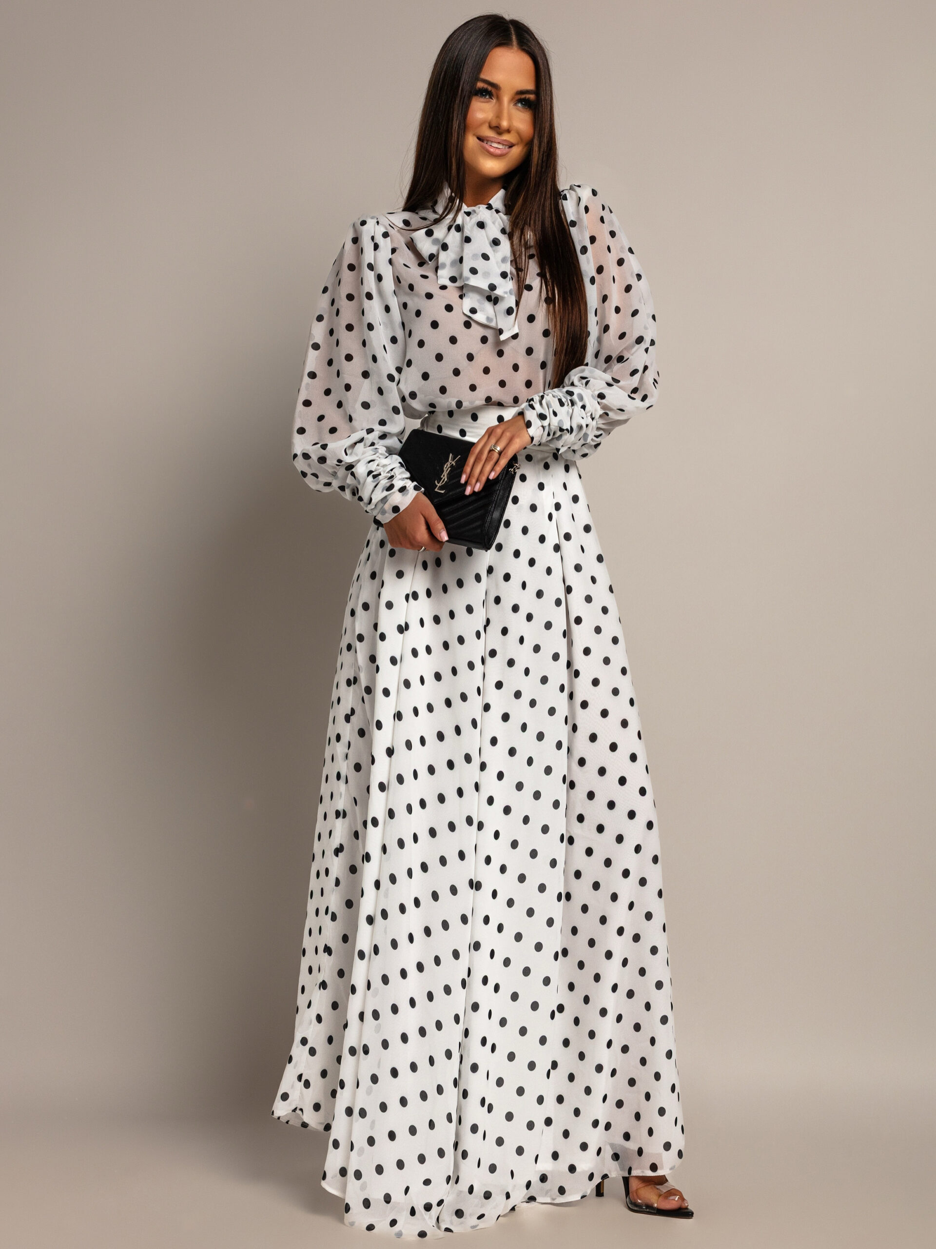 Zestaw w kropki – bluzka + spodnie NB Bilbi biały